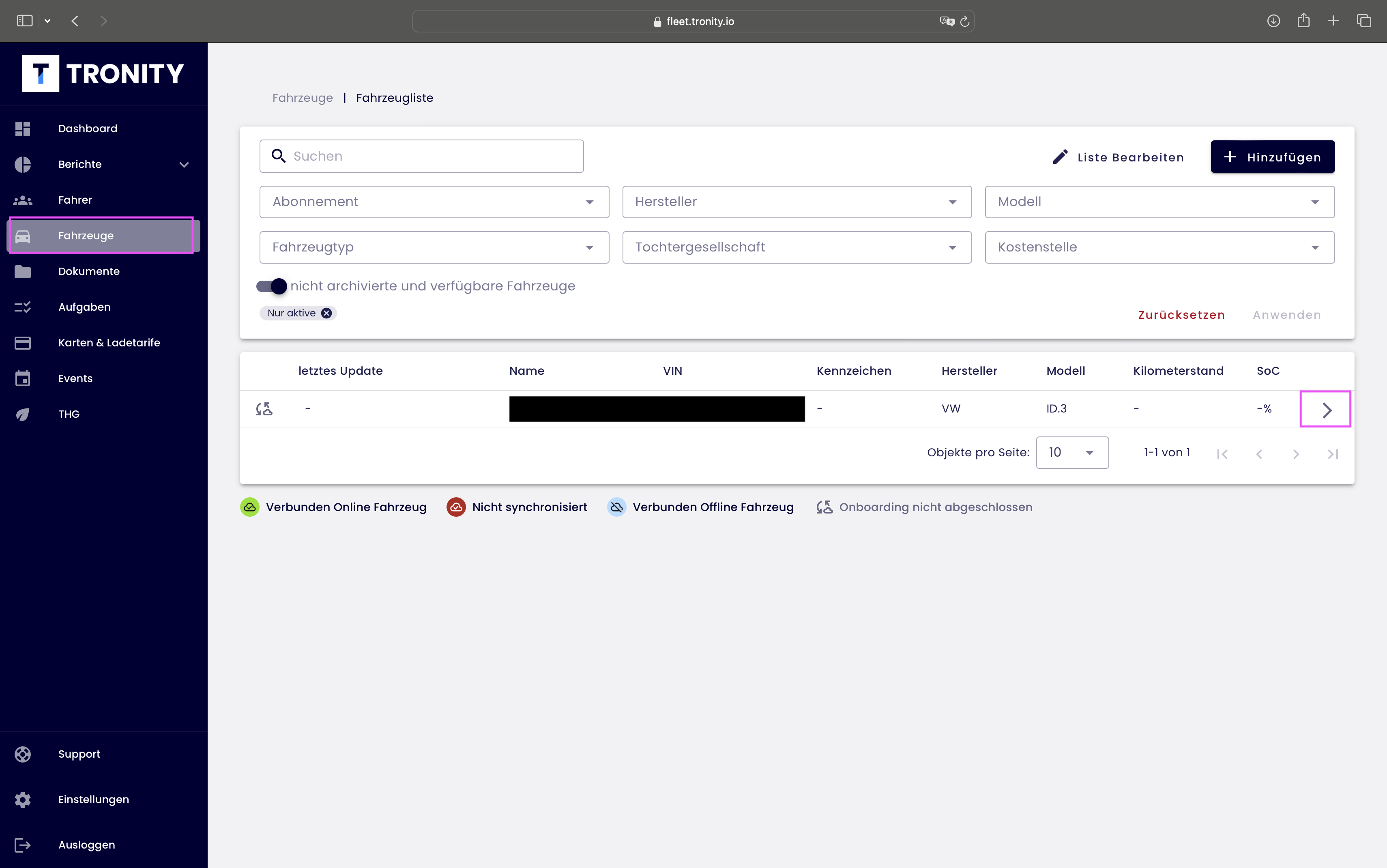 - Öffnen Sie das Dashboard in Ihrer TRONITY Flottenlösung