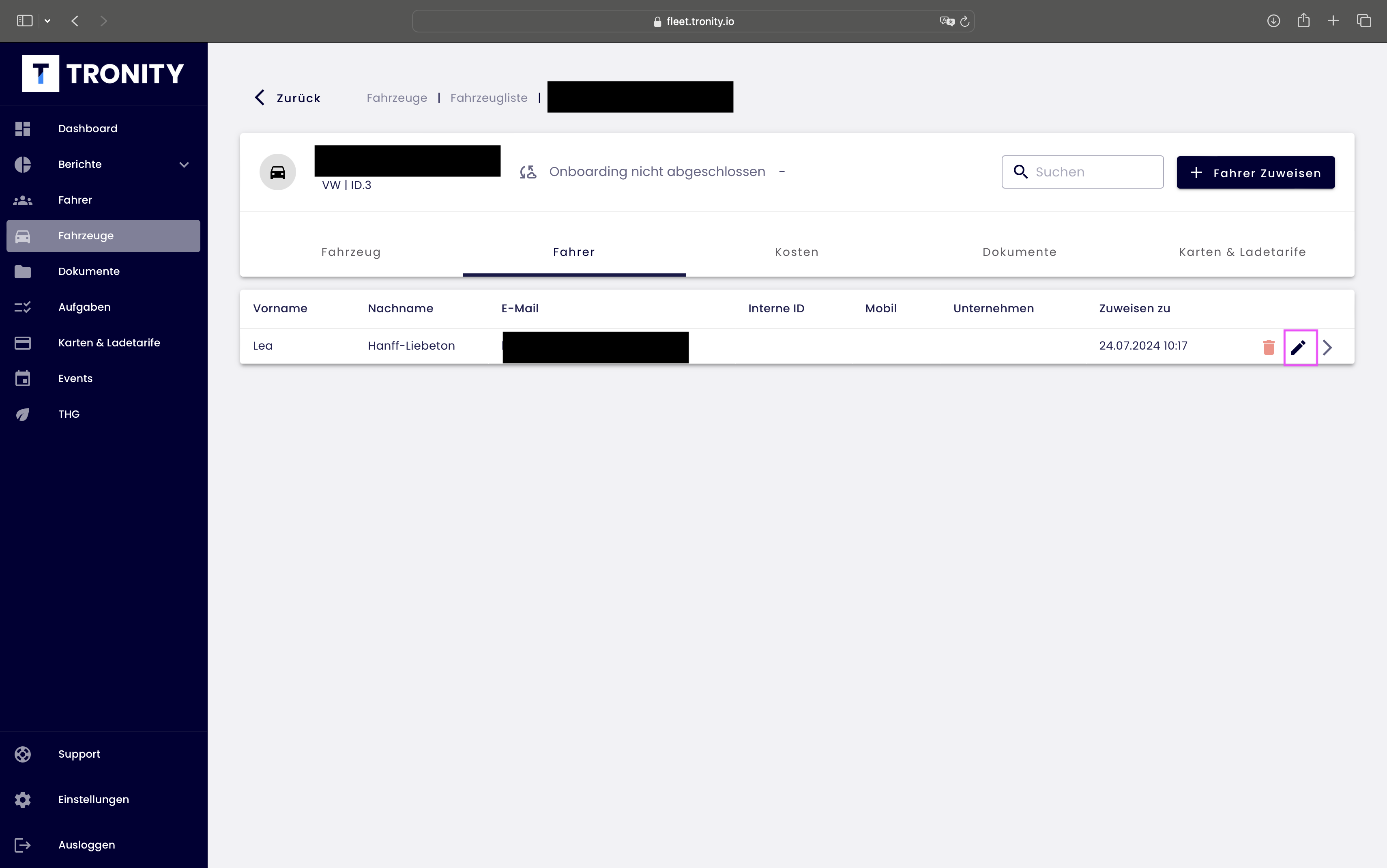 - Wechseln Sie zum Tab "Fahrer" und klicken Sie auf den Stift.